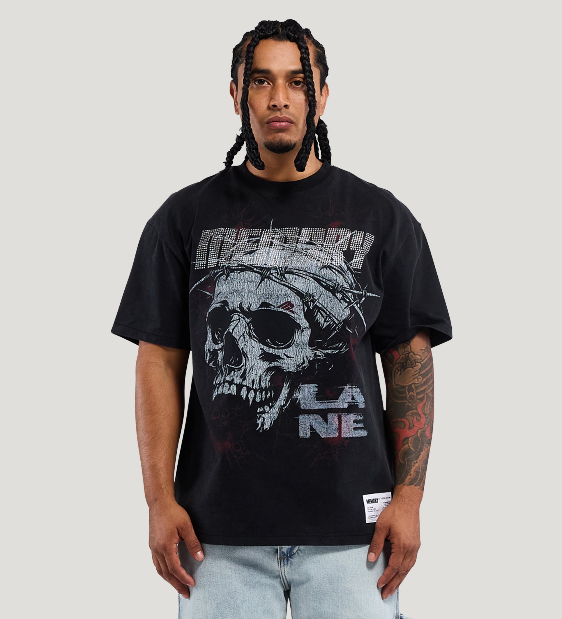 Skull Wire Tee - Rhinestones (Vintage Black)