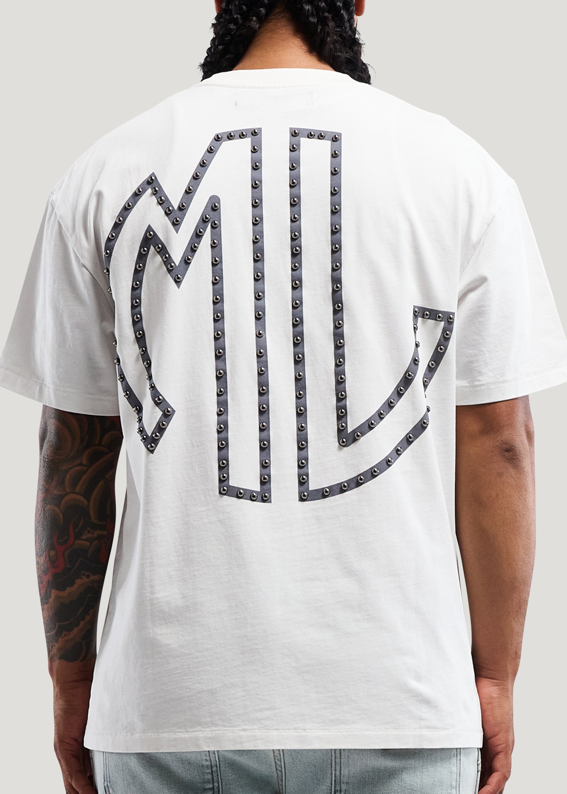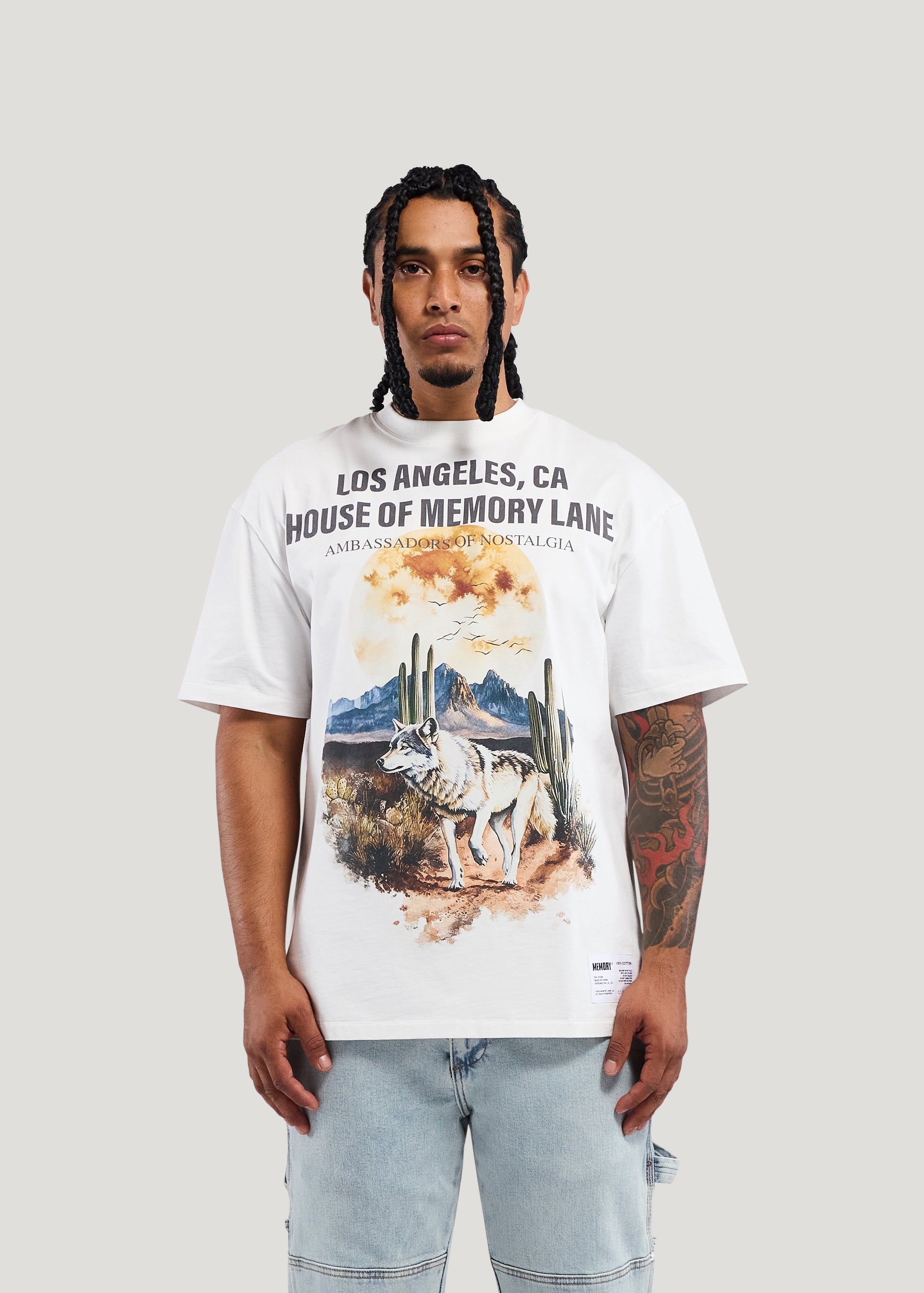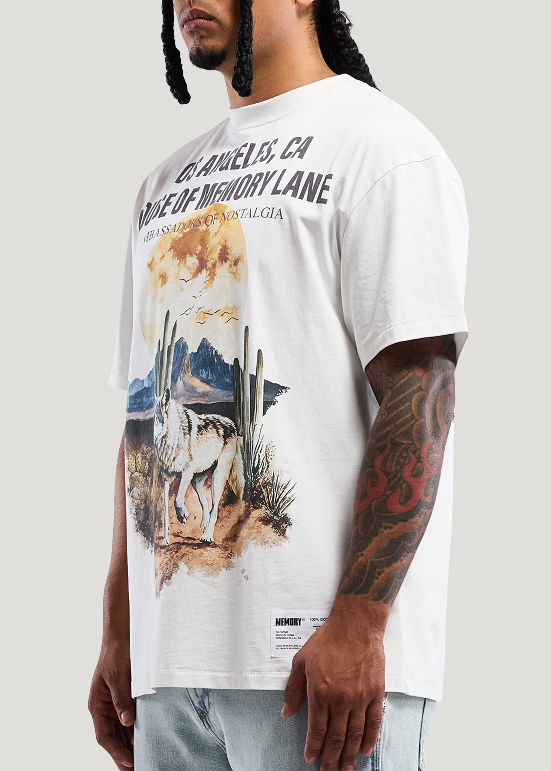 - 300g Cotton Jersey- Vintage white- Oversize print on front and back- Front bottom hem label