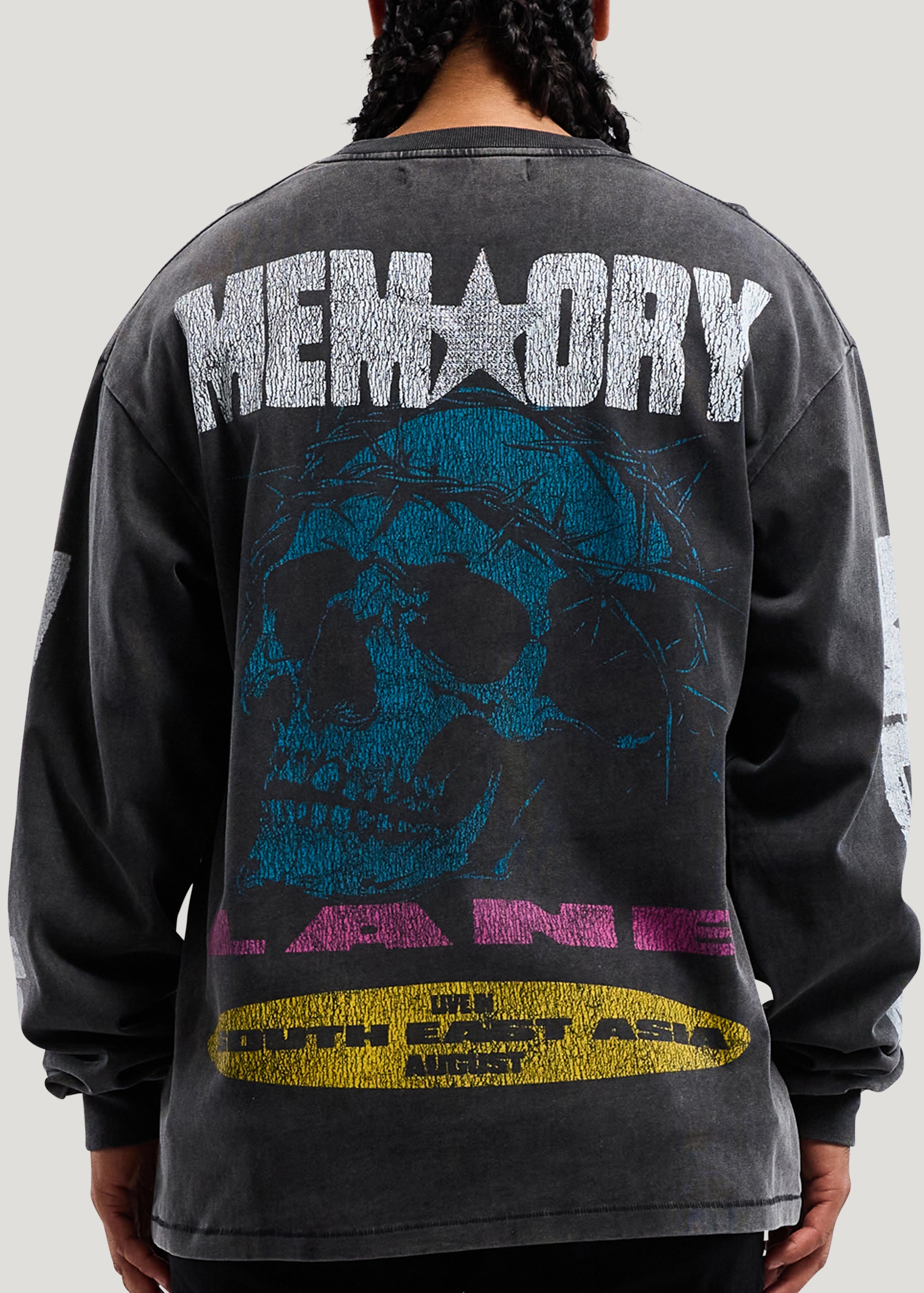 - 300gsm premium cotton jersey- Print on front - Print on back- Vintage wash- Rhinestones in designated areas