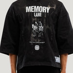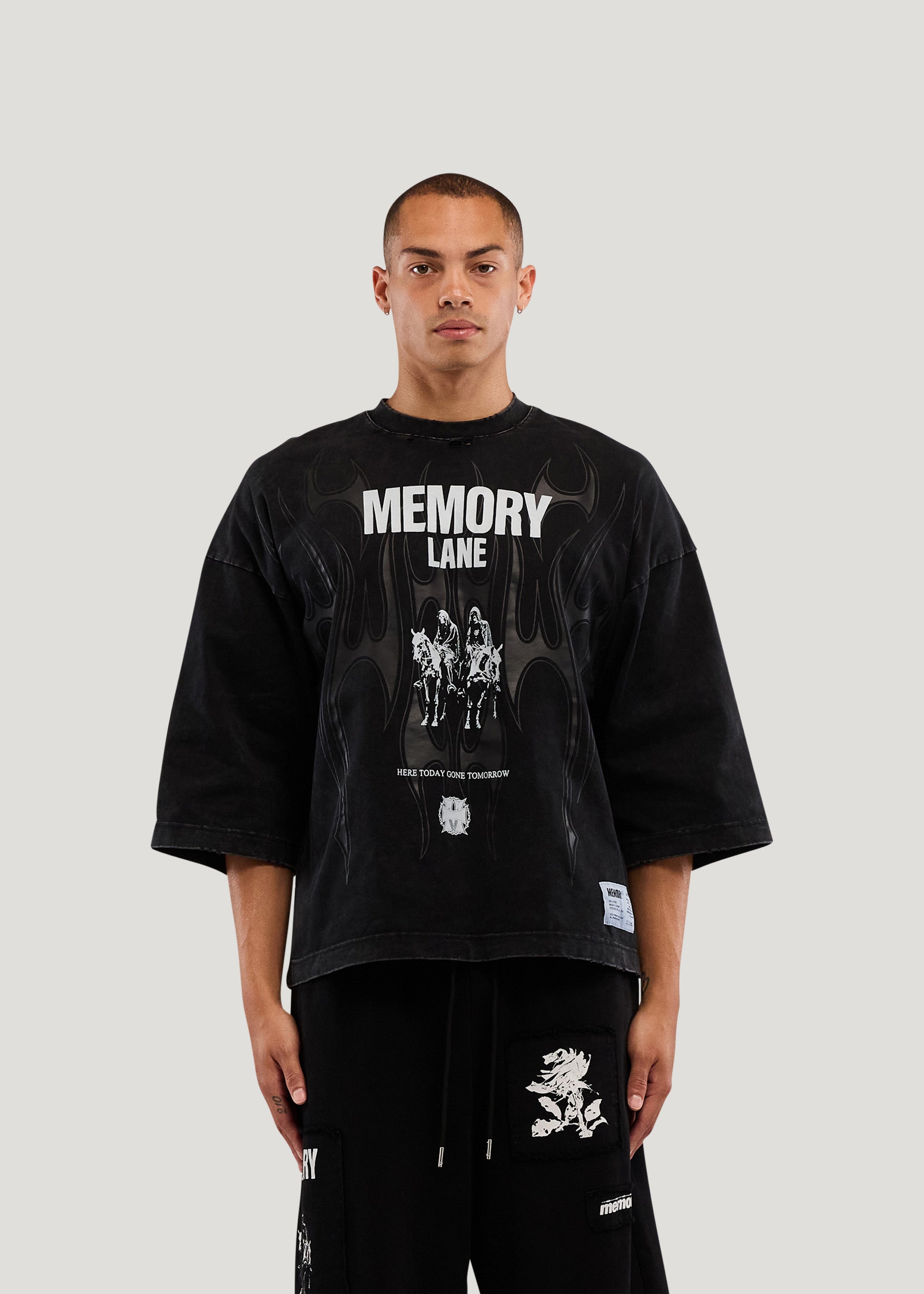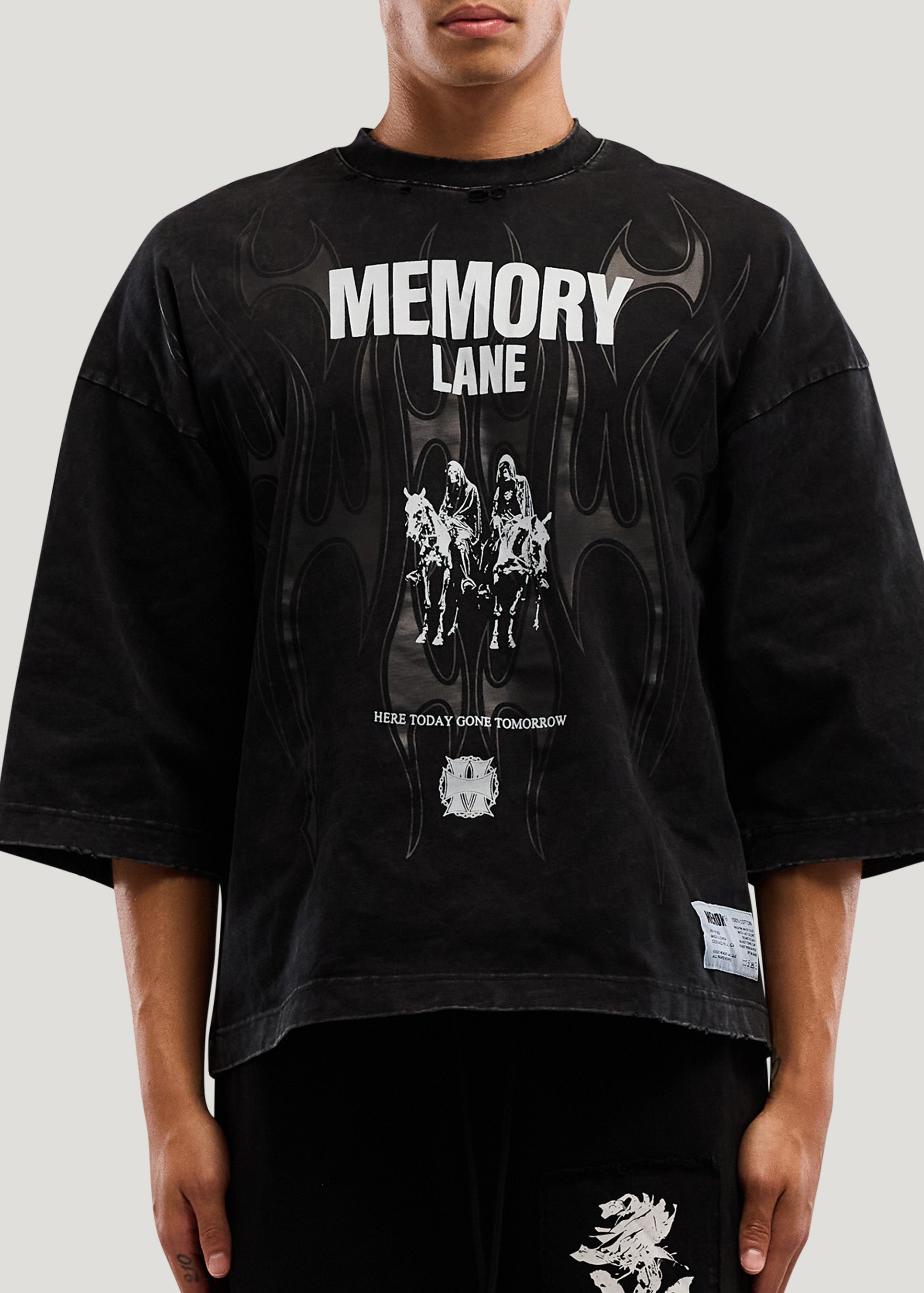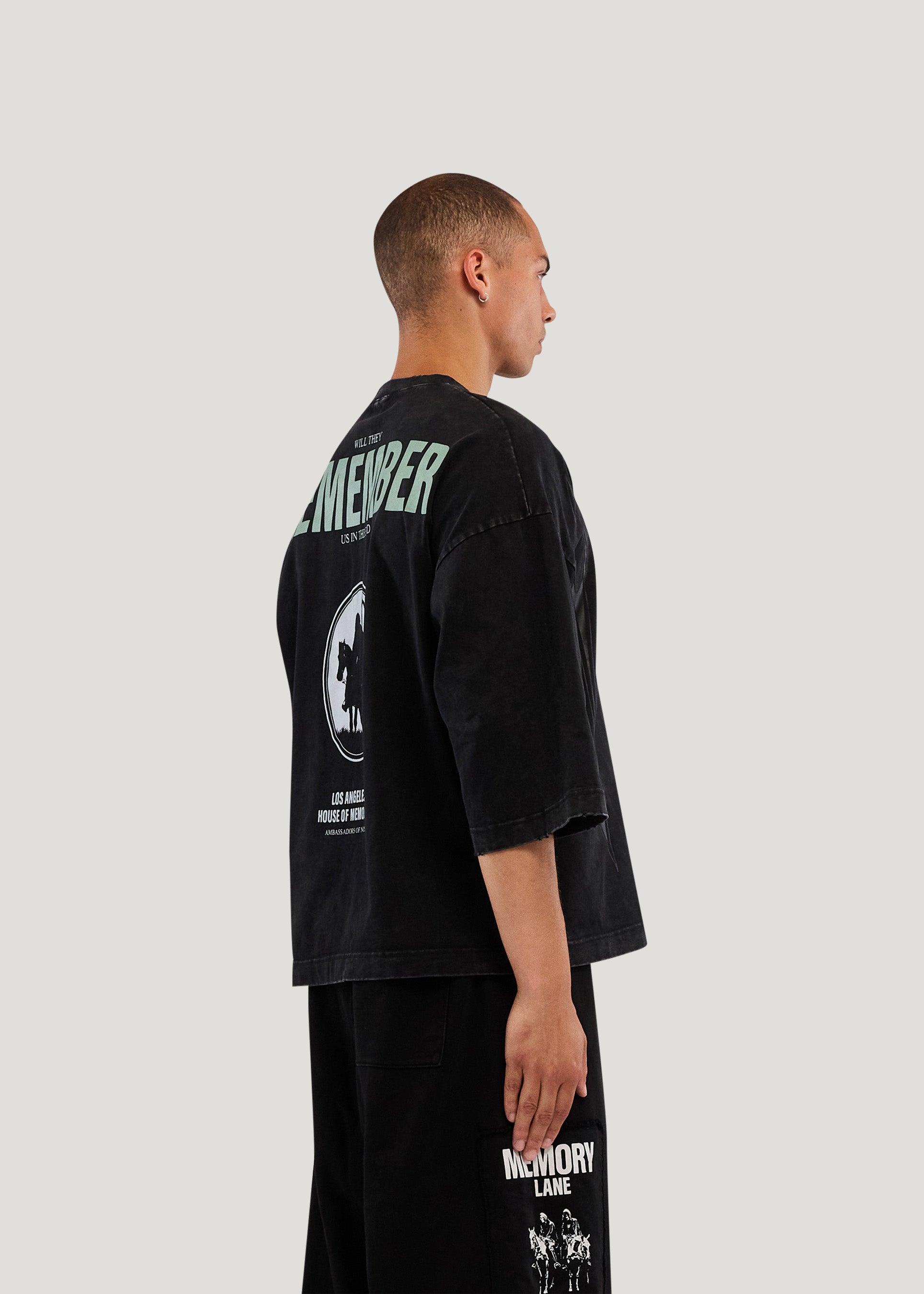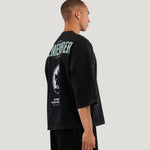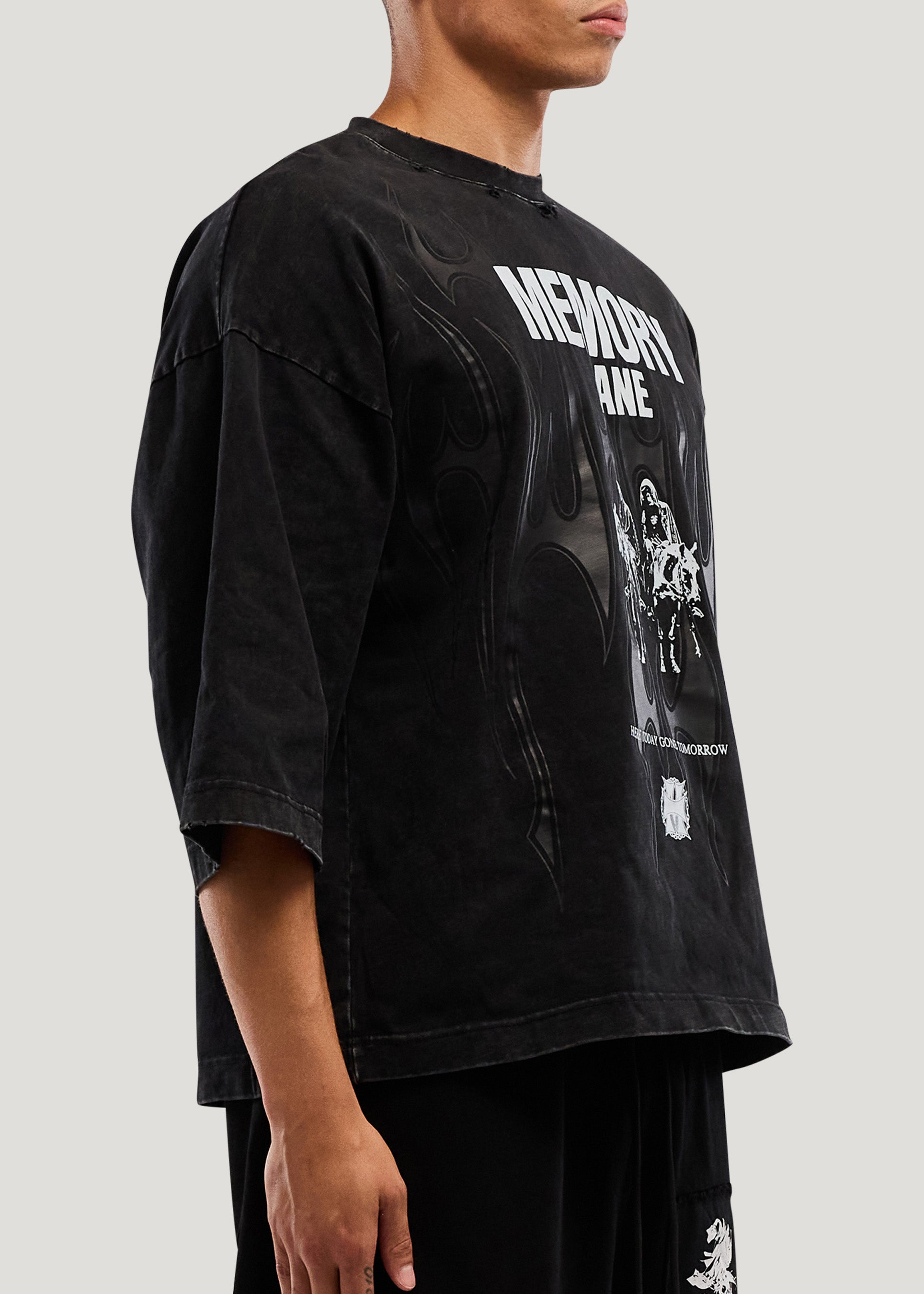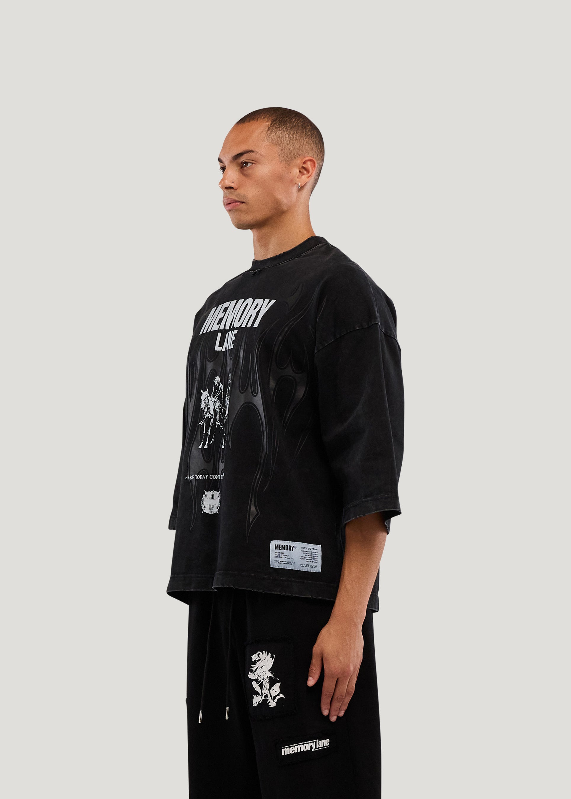 - 100% Cotton Jersey- Cropped Fit w/elongated sleeves- 300 Gsm weight- Garment wash- Oversize front print- Oversize back print- Care content front label