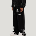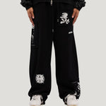 - 100% Cotton- Lightweight french terry- Vintage wash- Distressed print patch appliques throughout legs- Drawstring on waist- Blast rivets on pocket ends