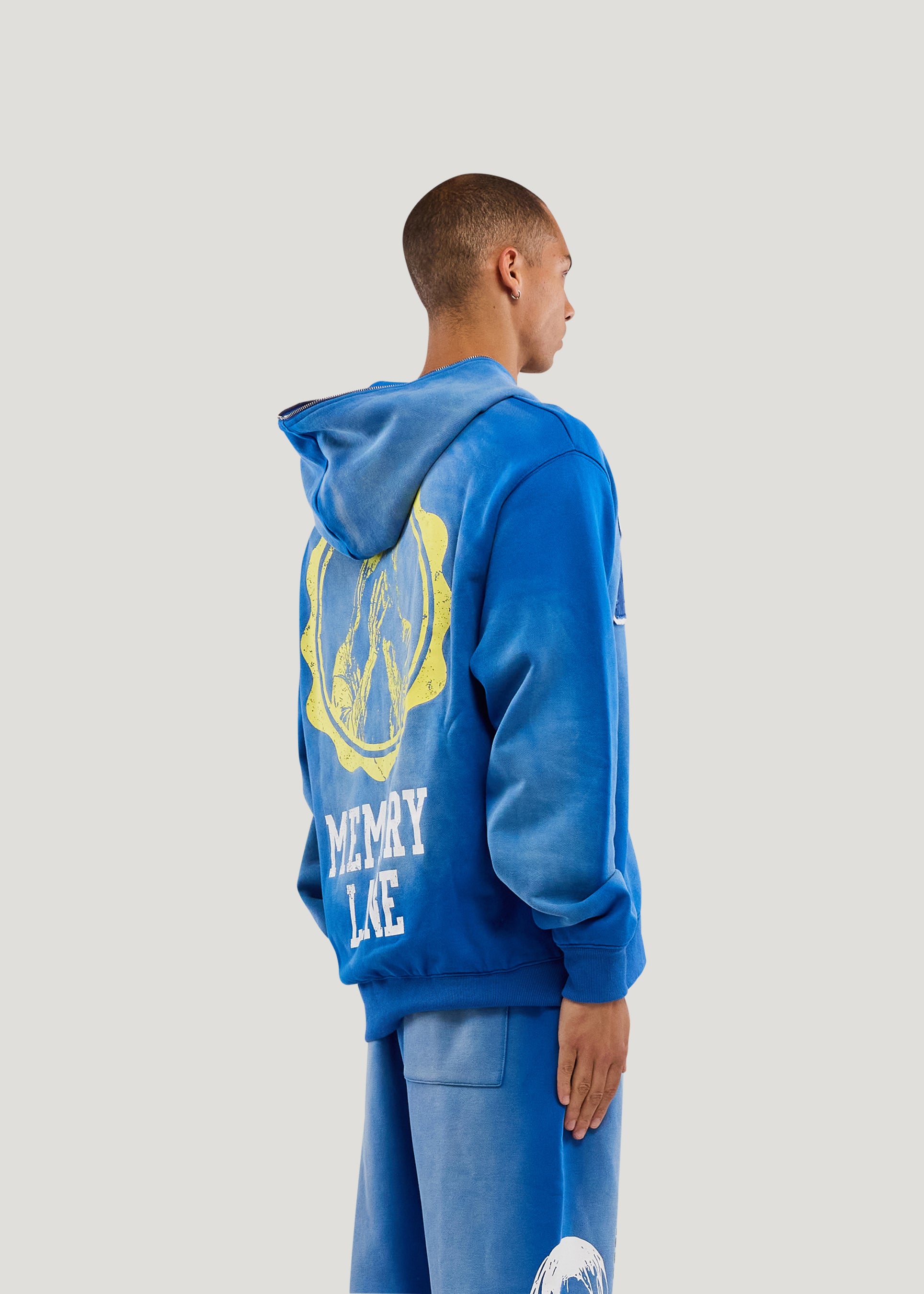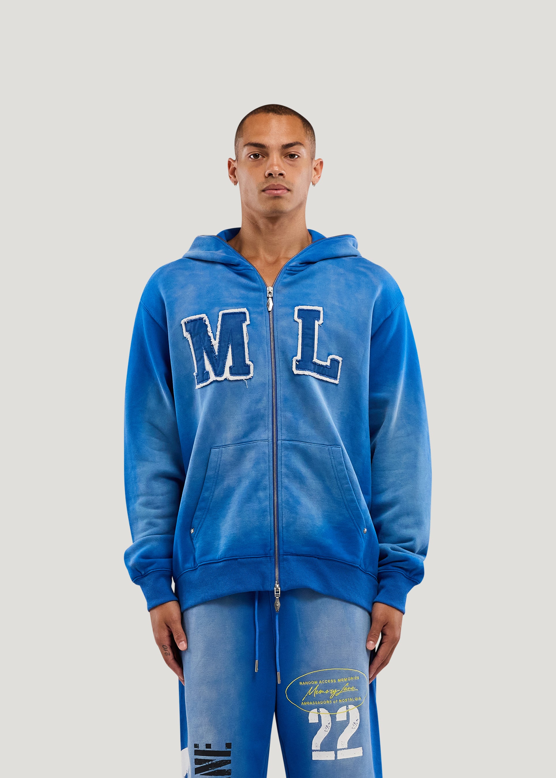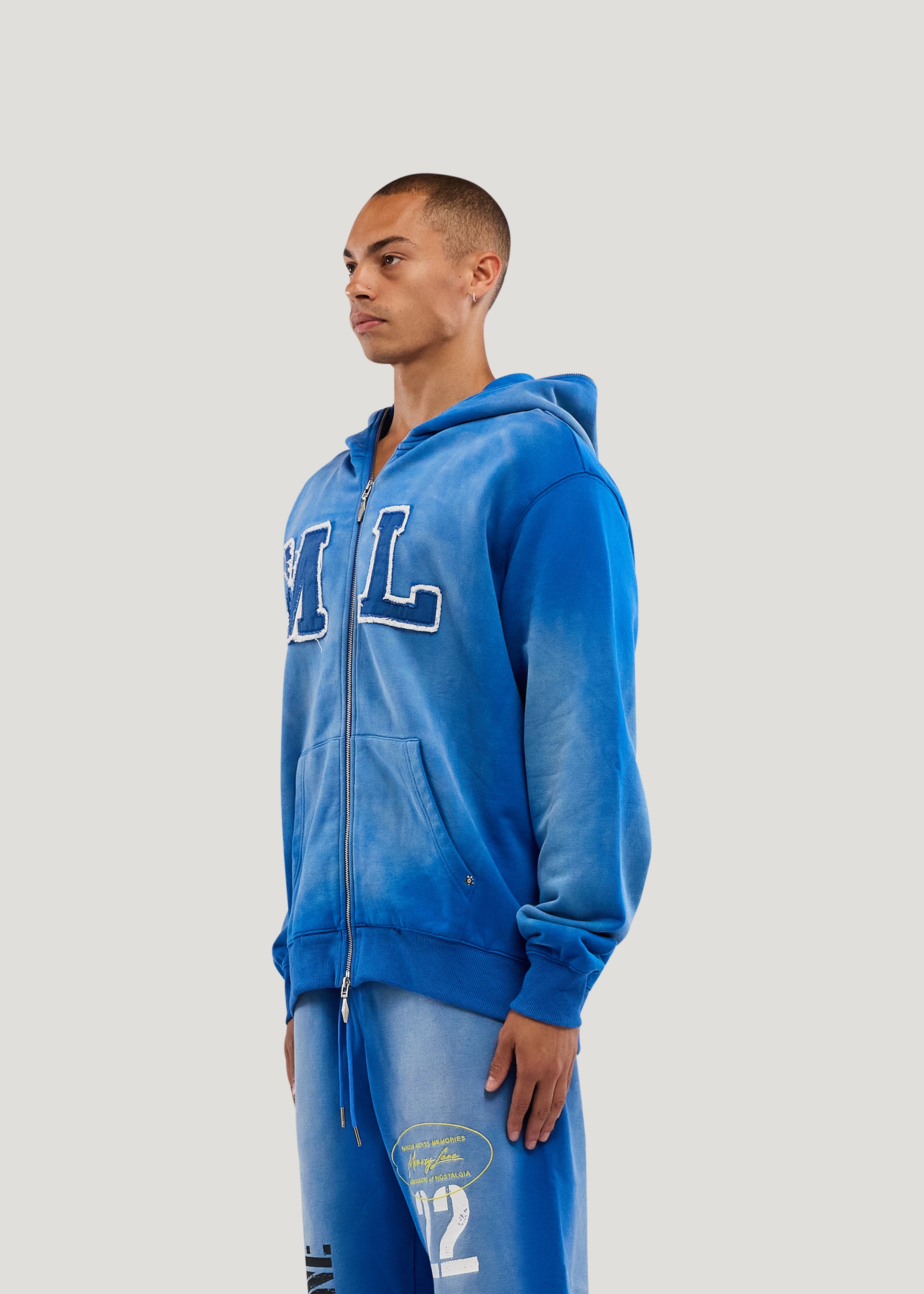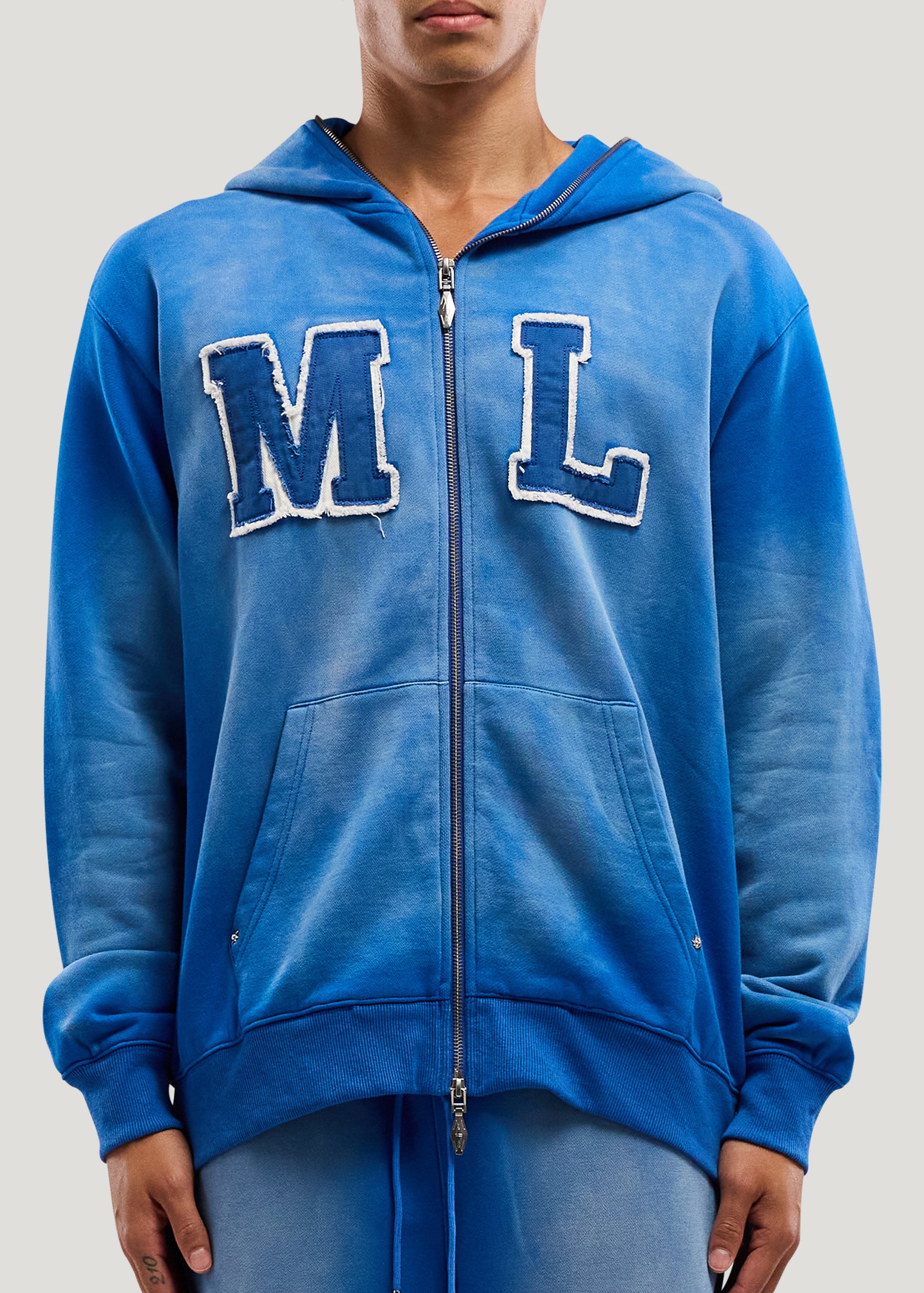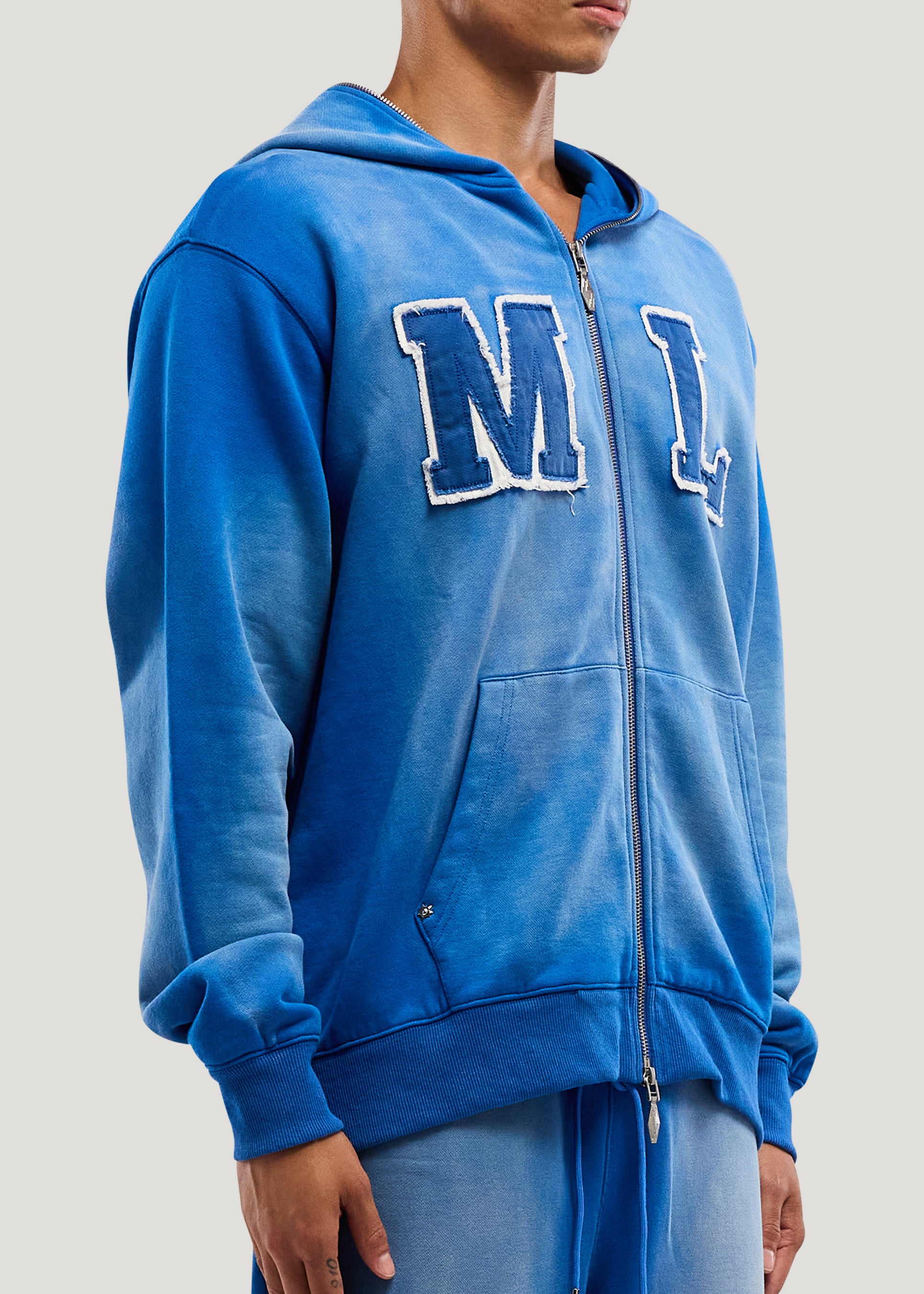 Initial Full Zip Hoodie (Faded Blue)